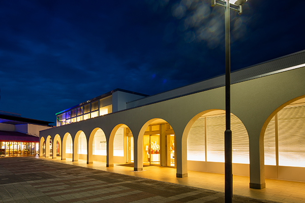開放的な天井とアーチが連なるガレリアのような造形が、ひと時の憩いを演出します。