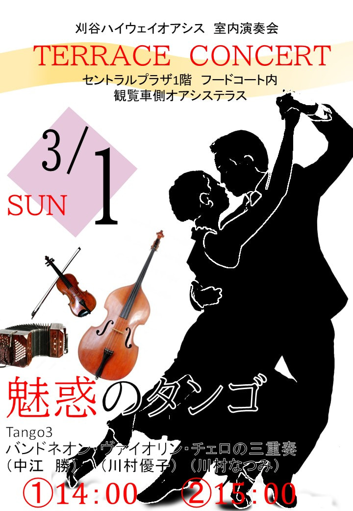 最新情報 News 最新情報 02月19日(木)2026年3月1日~ 営業時間のご案内 もっと見る Information施設紹介 Eventイベント 2026.03.21(土) 2026年3月21日(土) 「Spring Jazz Concert」 2026.03.01(日) 2026年3月1日(日) テラスコンサート~魅惑のタンゴ~ 2026.01.26(月) 2026年2月のイベントカレンダーを更新しました!