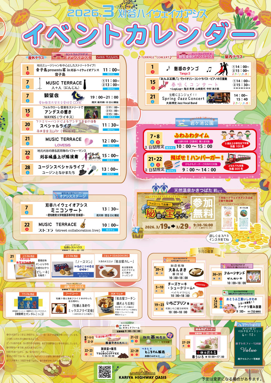 最新情報 News 最新情報 02月19日(木)2026年3月1日~ 営業時間のご案内 もっと見る Information施設紹介 Eventイベント 2026.03.21(土) 2026年3月21日(土) 「Spring Jazz Concert」 2026.03.01(日) 2026年3月1日(日) テラスコンサート~魅惑のタンゴ~ 2026.02.24(火) 2026年3月のイベントカレンダーを更新しました! 2026.01.26(月) 2026年2月のイベントカレンダーを更新しました!