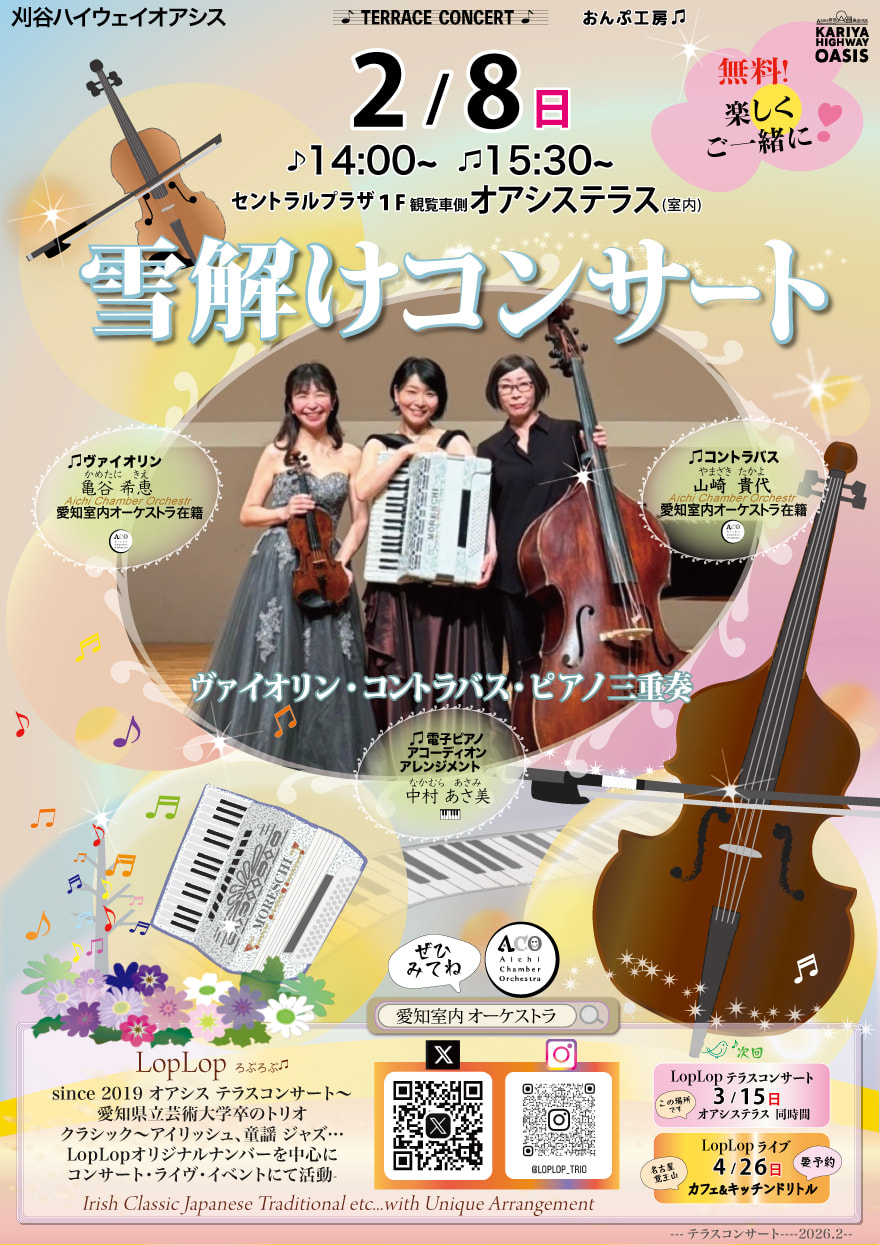 最新情報 News 最新情報 01月13日(火)ラーメン横綱2026.01.13~ おススメの品 更新しました! 01月01日(木)2025冬季イルミネーション ~Shining Steps~ もっと見る Information施設紹介 Eventイベント 2026.02.11(水) 2026年2月11日(水) 「Early Spring Concert」 2026.02.08(日) 2026年2月8日(日) 「雪解けコンサート」 2026.01.26(月) 2026年2月のイベントカレンダーを更新しました!