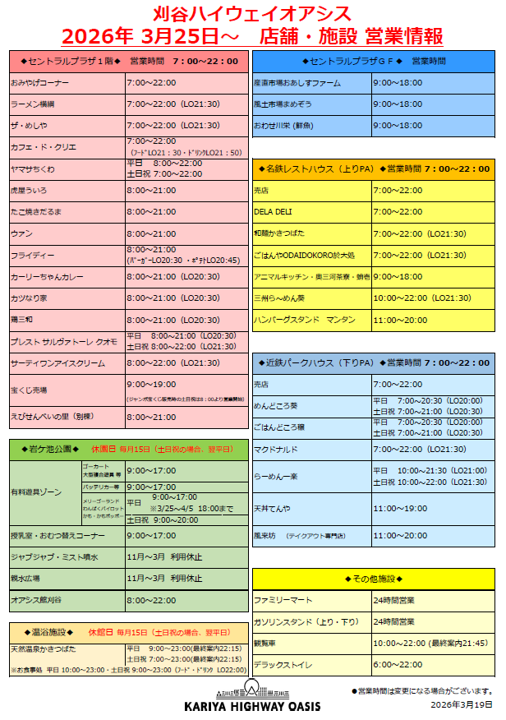 2026年3月25日~ 営業時間のご案内