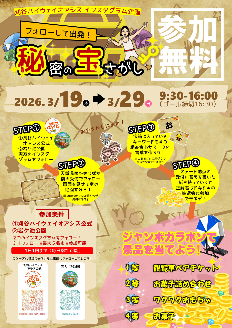 刈谷ハイウェイオアシスインスタグラム企画「フォローして出発!秘密の宝さがし」を開催します!