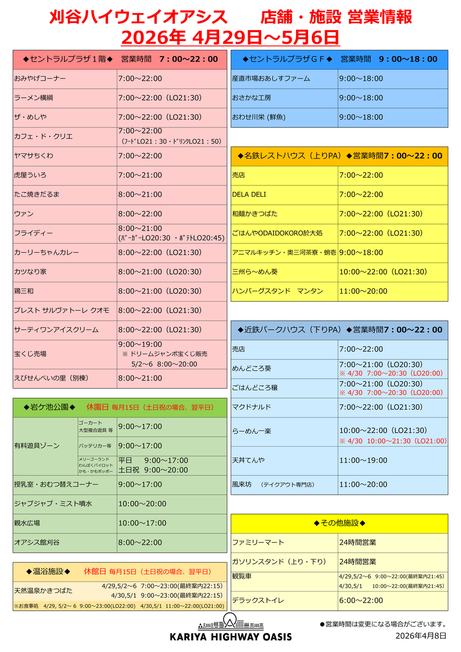 ゴールデンウィーク(4/29~5/6)営業時間のご案内